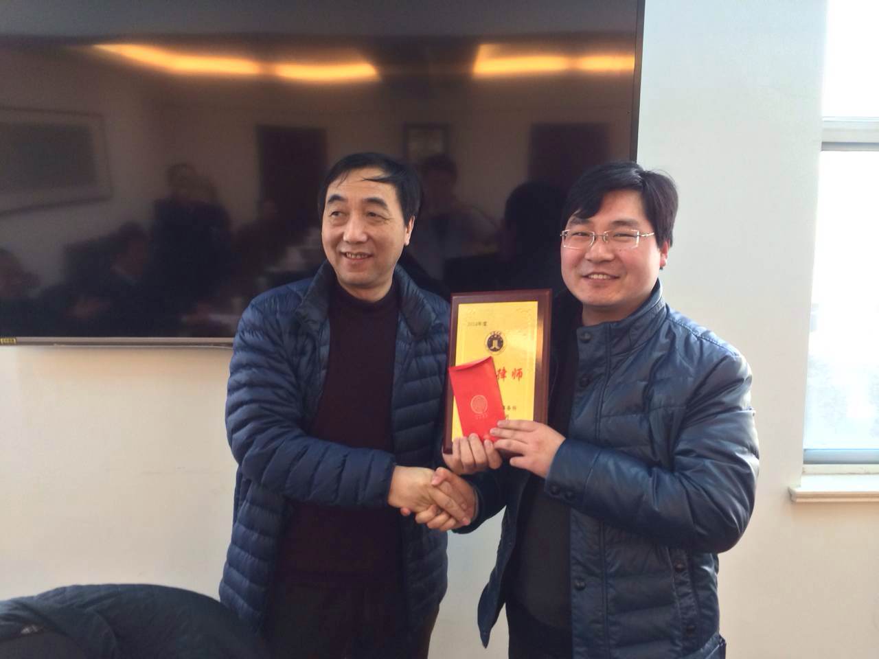 朱建主任就我所业务和党建工作进行总结。主要内容如下:1、我所在2014年度办理刑事案件一百四十余件,2、民事案件四百三十余件,3、非诉讼案件2件,4、律师担任顾问单位七十余家,5、为企业开展职工法律培训而是余场。我所有党员11名,2014年度开展各项民主生活会十余次,并以党员带头,全所投入的形式,积极参加各项普法宣传、法律援助等公益活动,积极承担法律人和法律团体的社会责任。为了鼓励律师发展,表彰先进典型,采取全所推选的形式,选出了桑真真,李乃久,董淑锦等三名优秀律师,并由与会领导为他们颁奖。