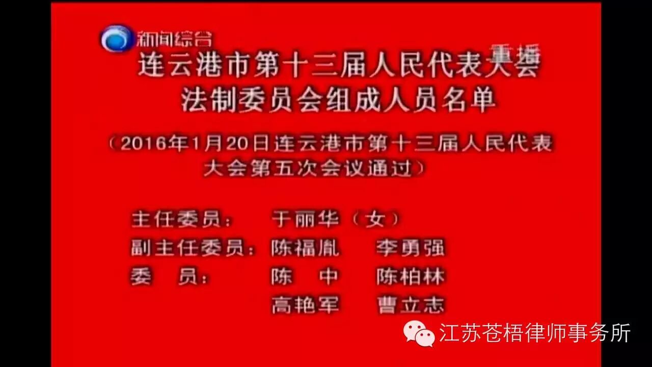 连云港市第十三届人民代表大会第五次会议于2016年1月17日顺利召开,我所主任曹立志律师作为我市律师行业唯一的人大代表出席了会议。